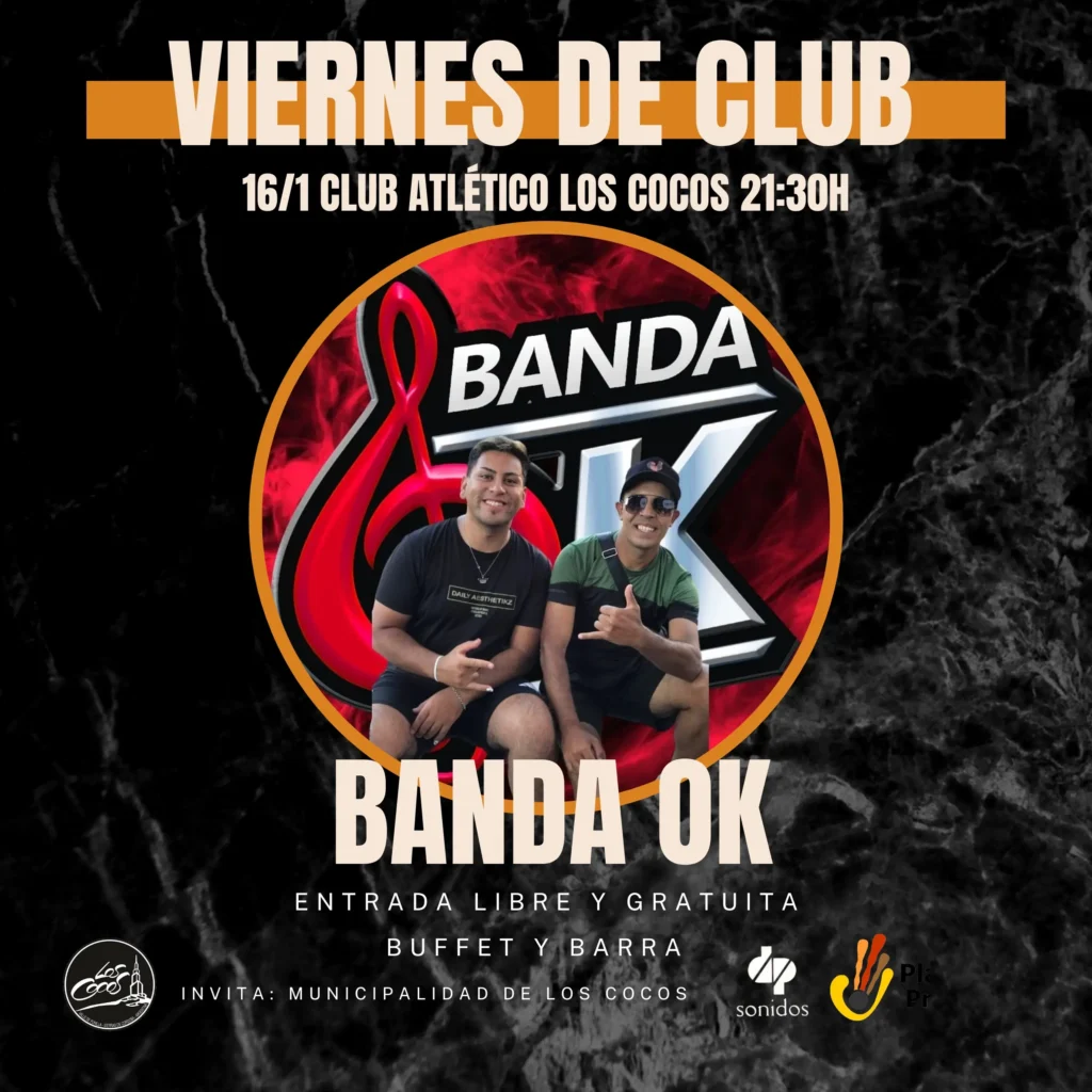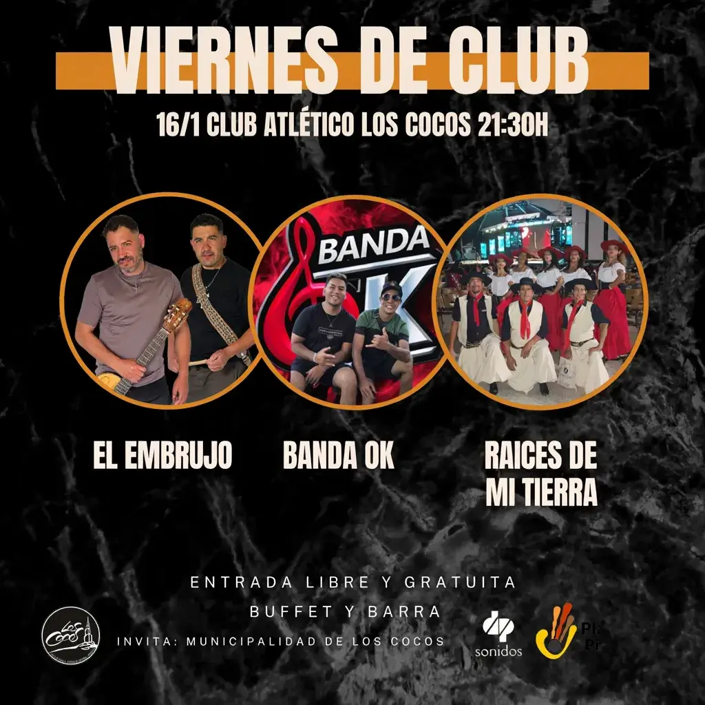 Este viernes 16 de enero, desde las 21:30 h, nos encontramos en el Club Atlético Los Cocos para vivir una noche bien nuestra