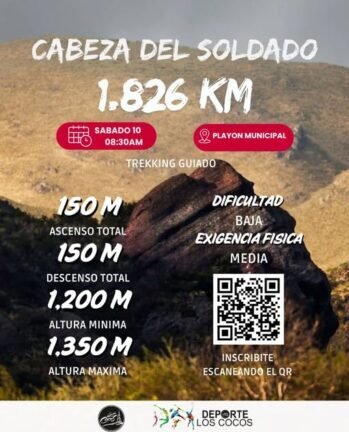 ¡Caminamos juntos hacia la Cabeza del Soldado! El próximo 10 de enero te invitamos a vivir una mañana distinta, conectando con la naturaleza, el paisaje y el aire puro de nuestras sierras. Salida: 8:30 h Desde: Playón Municipal Actividad gratuita Con inscripción previa scaneando el QR o ingresando AQUÍ Mové el cuerpo, despejá la mente y descubrí uno de los rincones más lindos de Los Cocos. ¡Sumate a la caminata!