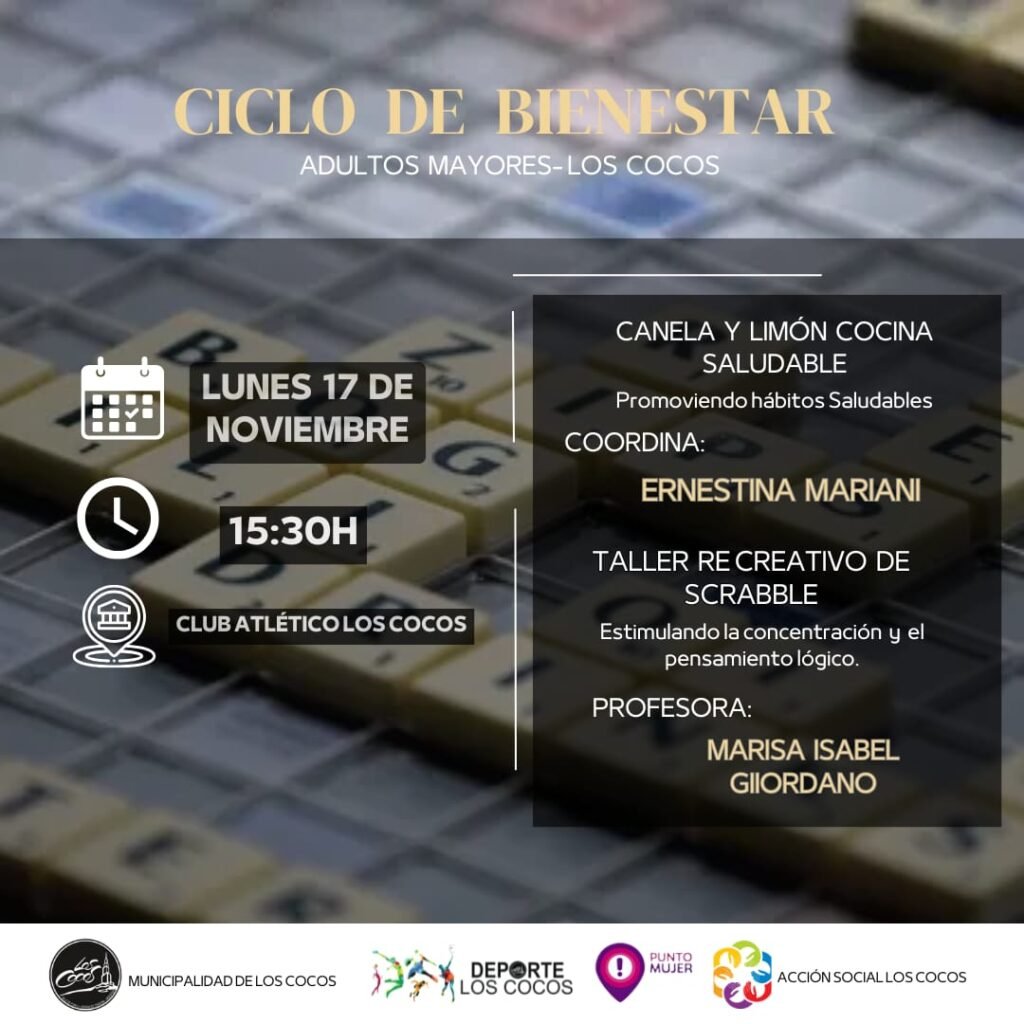 Te esperamos para seguir construyendo juntos bienestar, salud y encuentro en esta nueva jornada del ciclo Calidad de Vida para Adultos/as Mayores de Los Cocos.